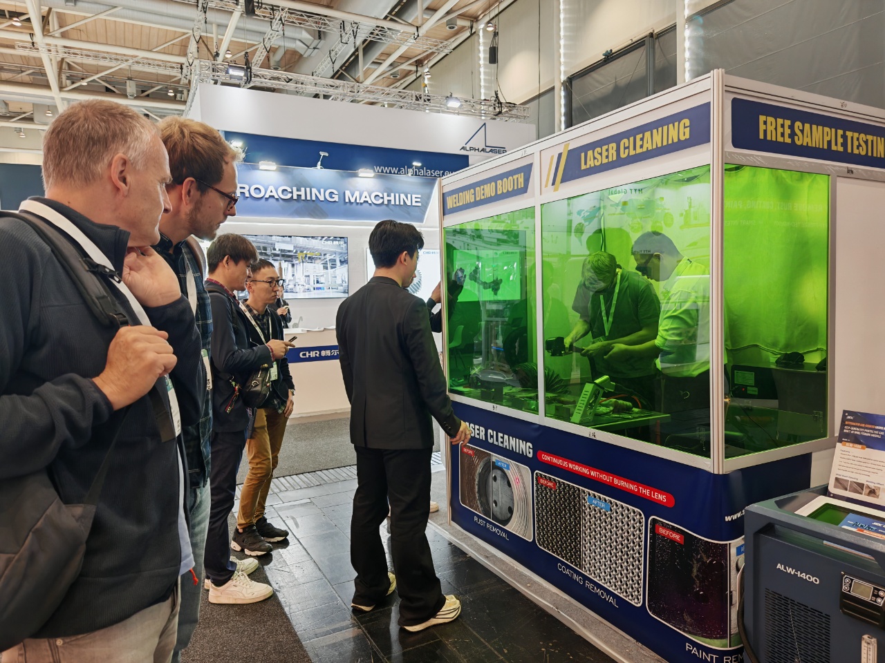 One of the biggest highlights has been the live demonstration of our laser welding machine, which drew large crowds and sparked enthusiastic discussions.